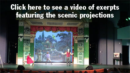 The set design for "Mary Poppins" is a Victorian toy theater built life-size. The scenic drops behind the toy theater are simulated with rear projection video. It was originally conceived for Denton Community Theatre in Denton, Texas. The set no longer exists but the concept and scenic projections are available for rental. The projections would require additional production in order to adapt animations to your specific staging. Contact Philip Lamb for more information: email at: