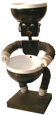 Distinctive features: Plastic bowls; plastic animated eyes; red fabric mouth;