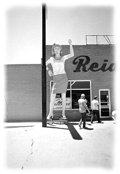 This large Fiberglas woman was purchased from Uniroyal Tire and Rubber Company and placed in front of a tire store in Lamesa. I've been informed that since this picture was taken, the lady has been repainted to represent a Lamesa Golden Tornado cheerleader. And by the way, it's pronounced La-MEE-sah.